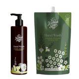 غسول اليدين + عبوة إعادة تعبئة - لافندر، إكليل الجبل، زعتر ونعناع | ٢٥٠ مل + ٥٠٠ مل